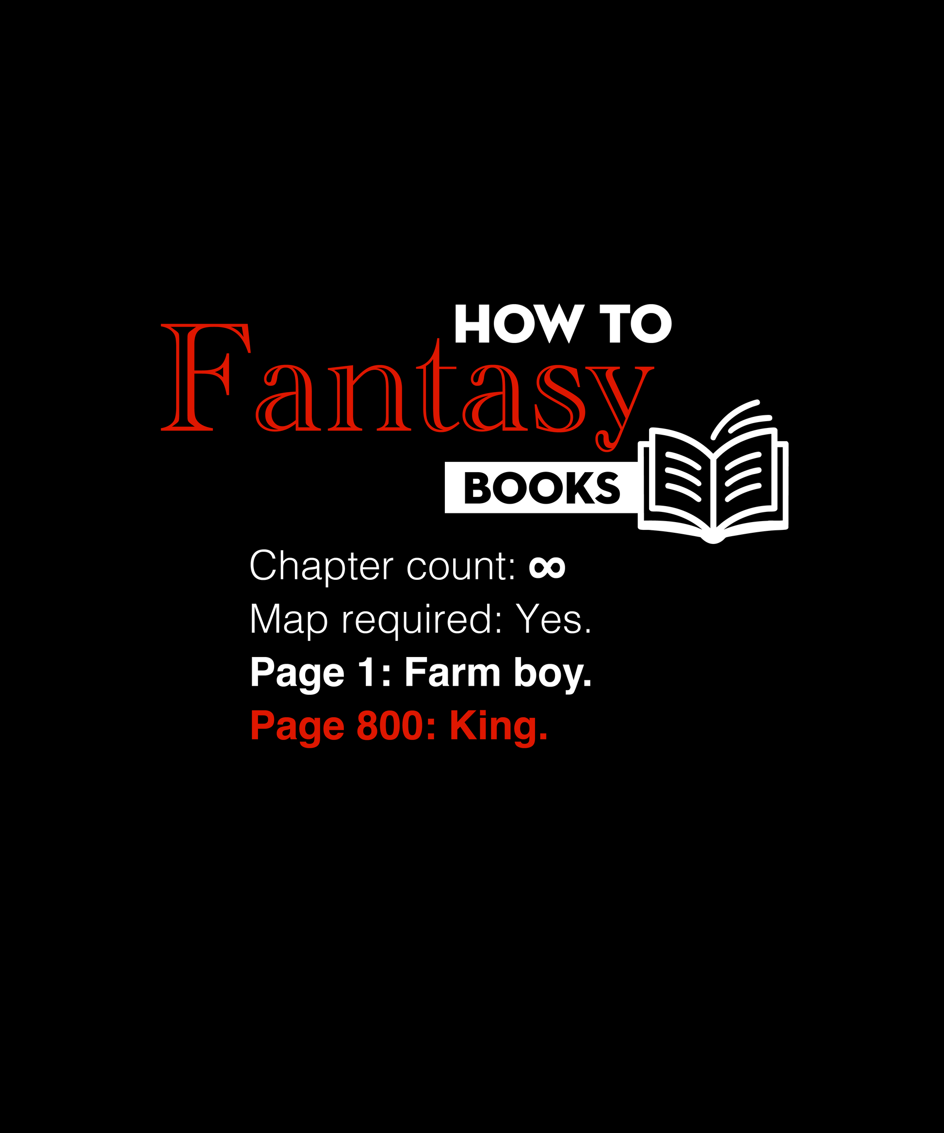 A playful jab at the length of fantasy novels—and how they always crown someone by the end.