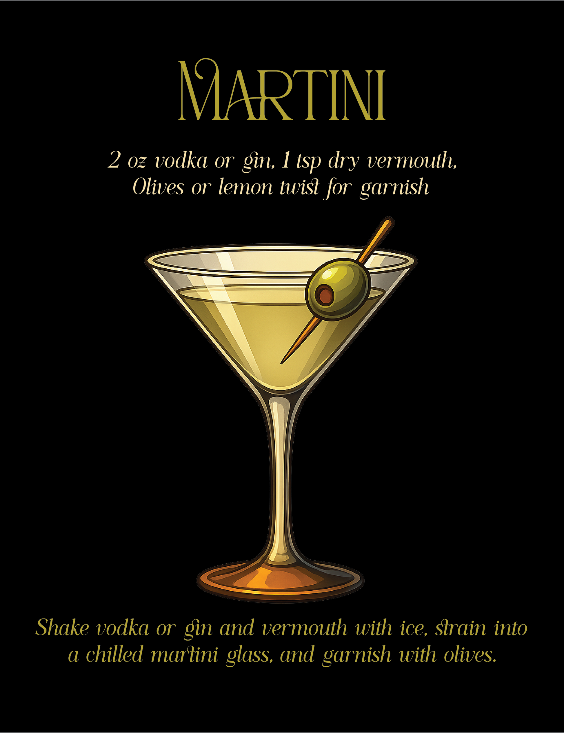 This piece honors the refined simplicity of the classic Martini—a symbol of style, confidence, and cocktail culture. I wanted to capture the drink’s elegance, from the chilled glass to the iconic olive garnish. It’s a tribute to timeless bar rituals and perfect for lovers of vintage design, home bars, and martini moments.