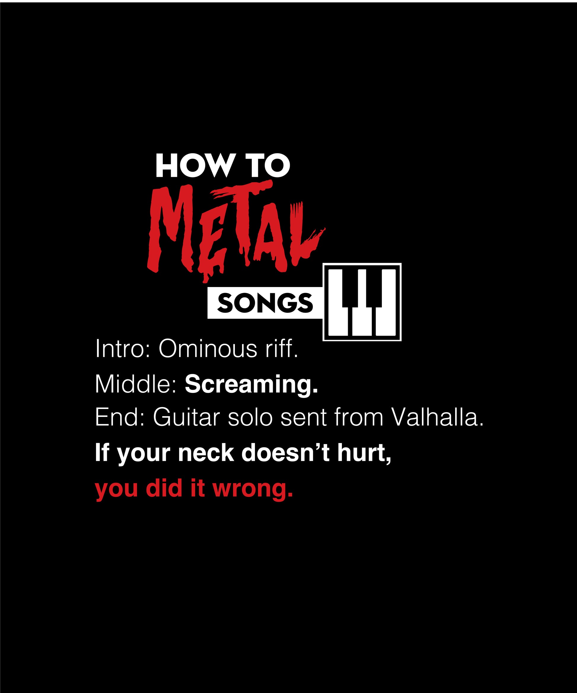 The anatomy of a metal song: ominous riffs, screaming souls, and neck pain. A tribute to the loudest fans in music.