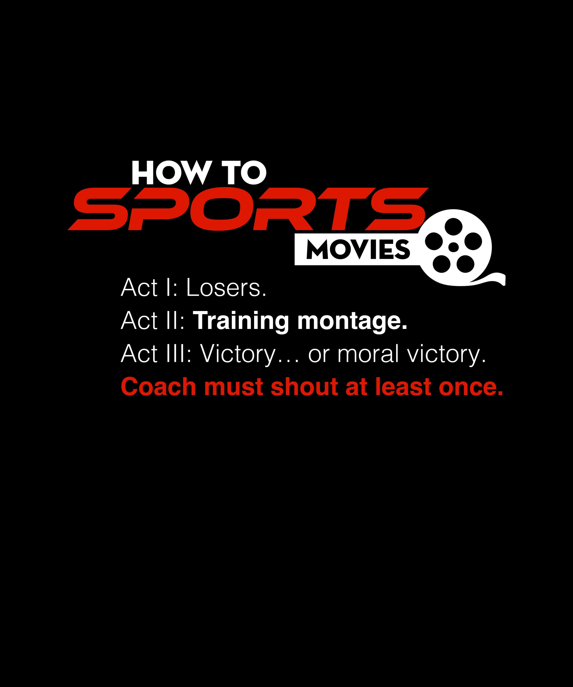 A minimalist tribute to every sports movie ever: intense moments, big plays, and a coach who absolutely must yell once.