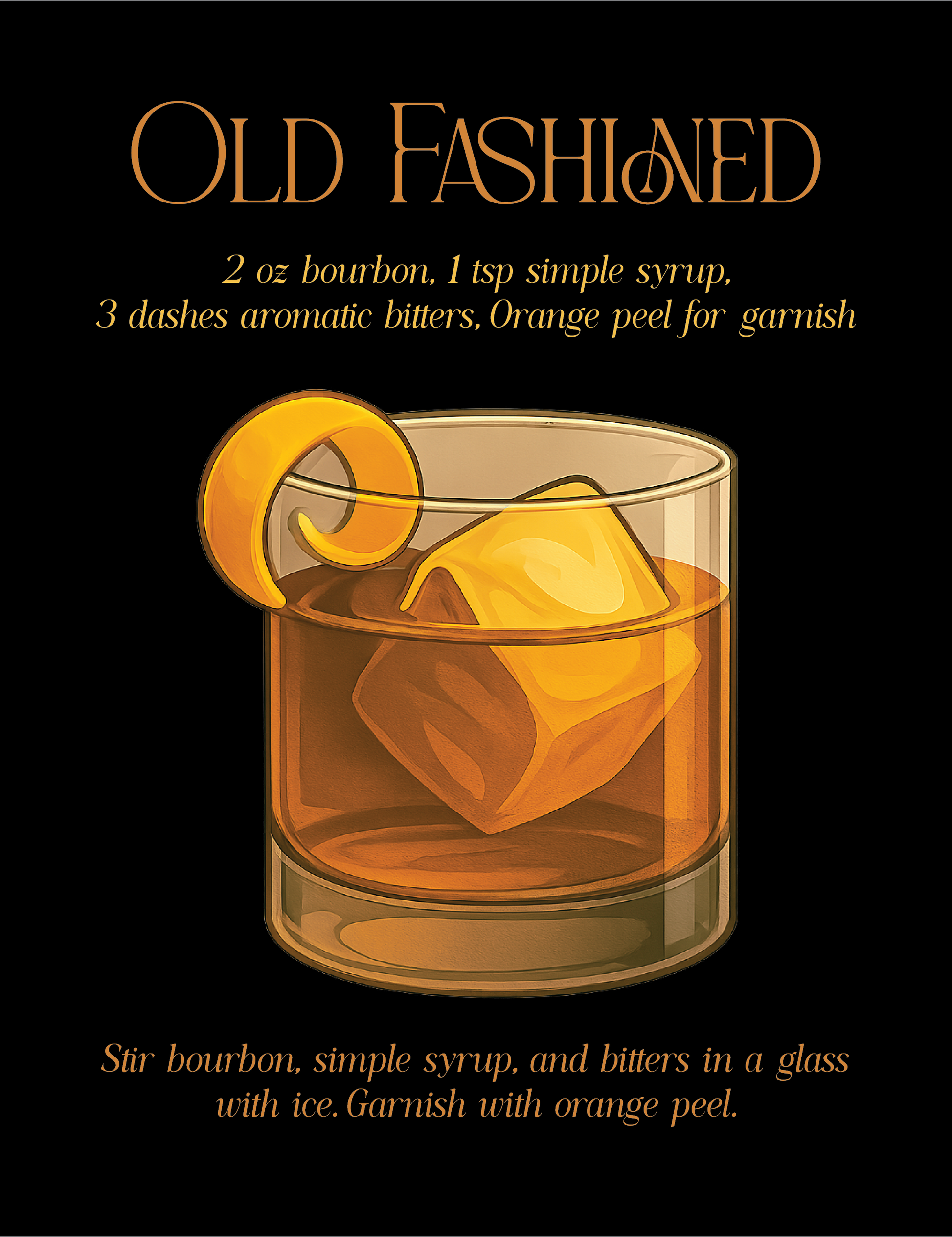 This piece pays homage to one of the oldest and most iconic cocktails—the Old Fashioned. With its rich bourbon color, signature orange peel, and timeless recipe, this artwork blends tradition and elegance. Designed for whiskey lovers and vintage souls, it captures the ritual of sipping something classic and bold.